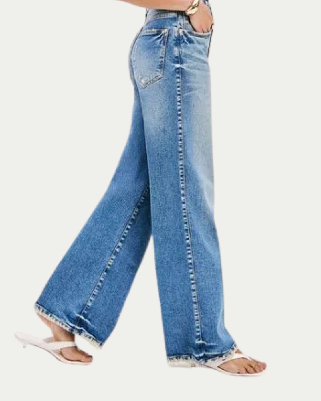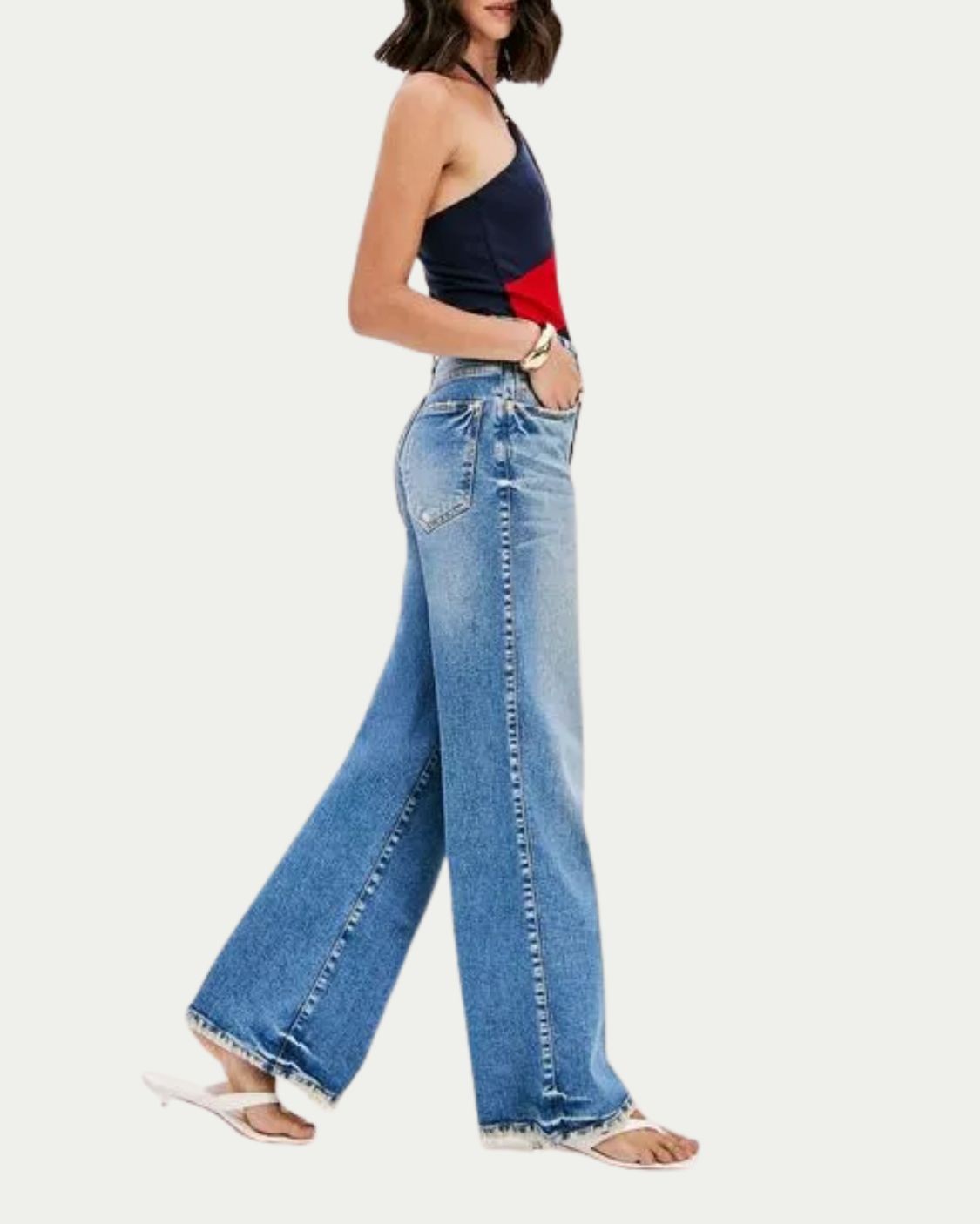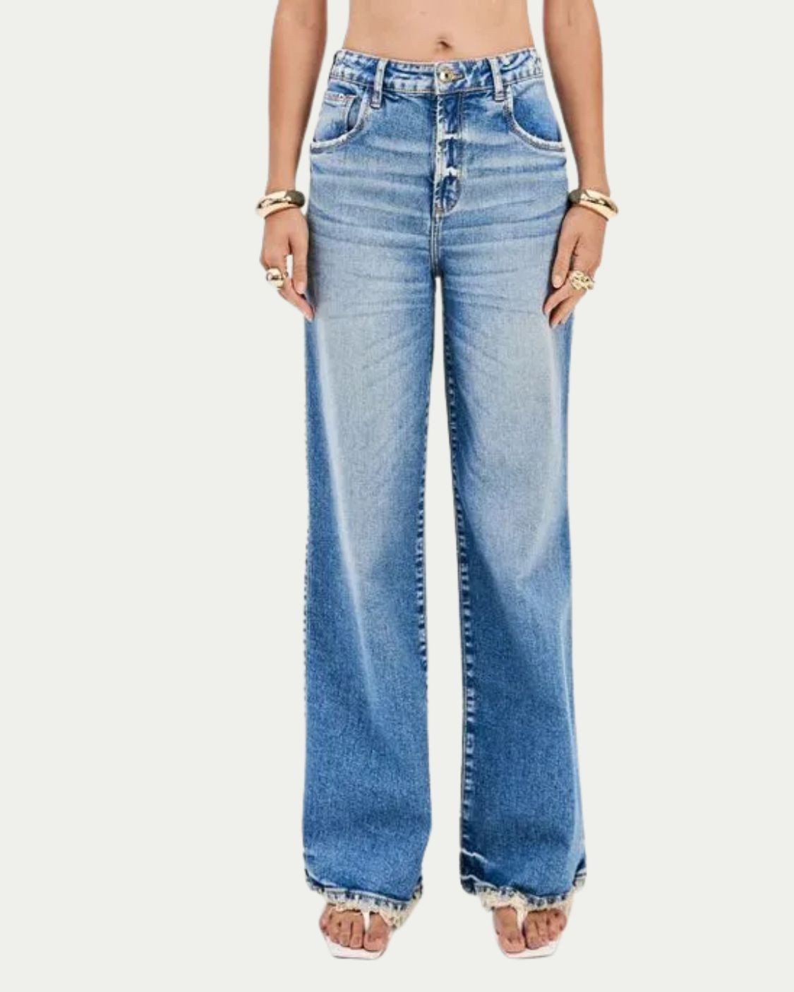 Clique em Comprar Agora e leve a Calça Jeans Wide Leg Azul Lança Perfume que vai virar sua farorita!