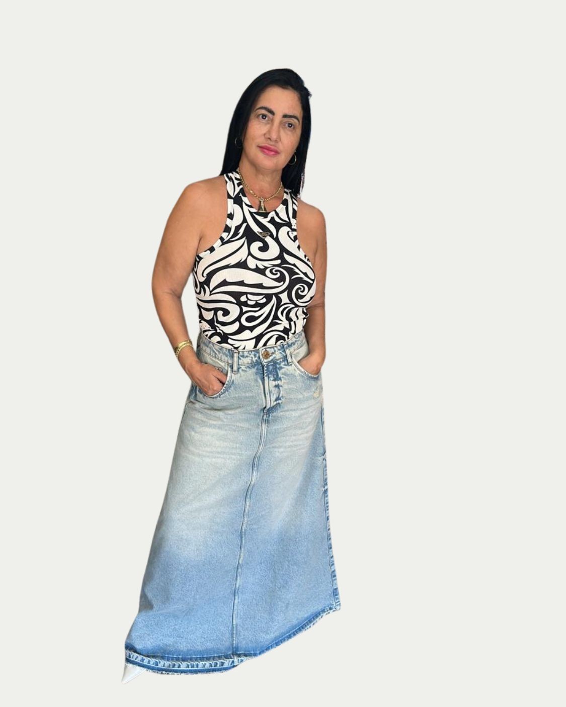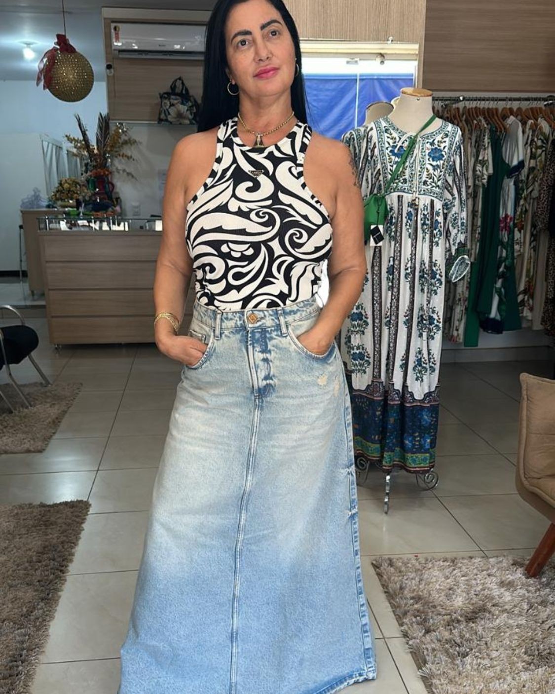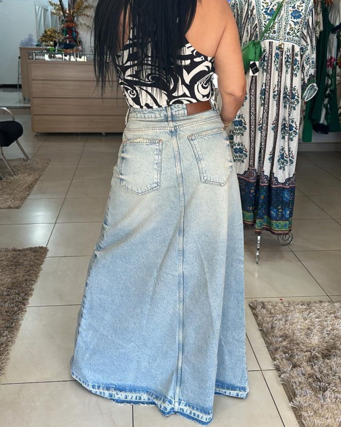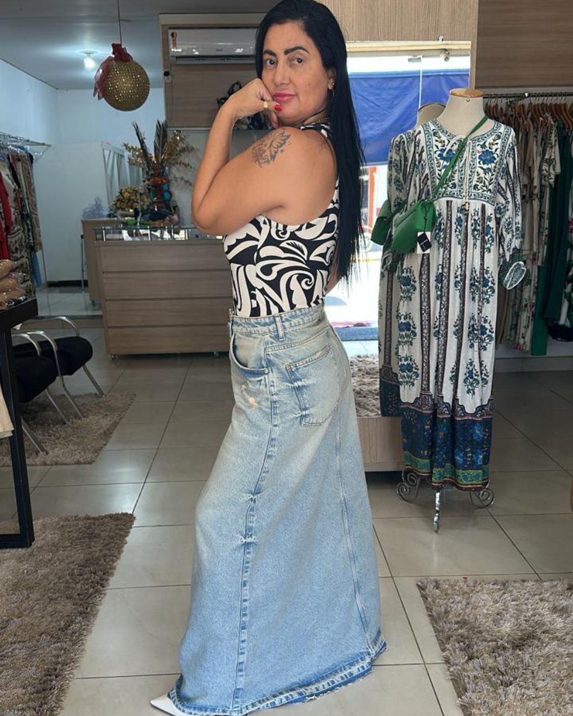 Saia Jeans Longa Super High – Estilo que se alonga e encanta com atitude