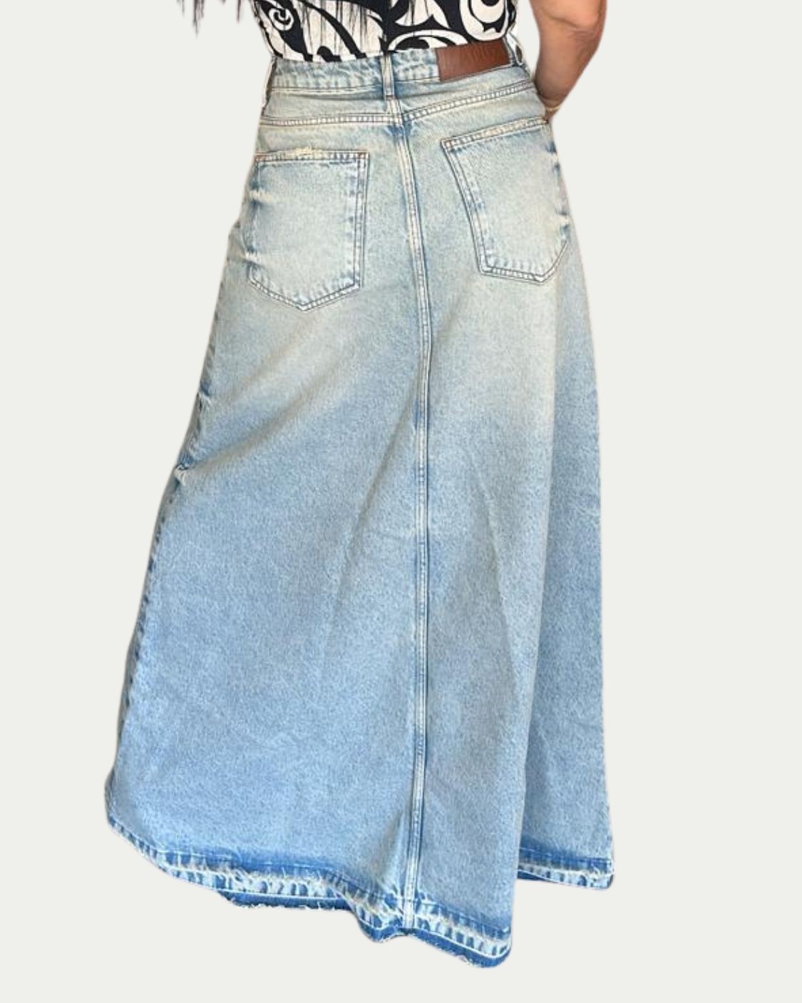 Garanta já a sua Saia Jeans Longa Super High e destaque-se com autenticidade e altivez!