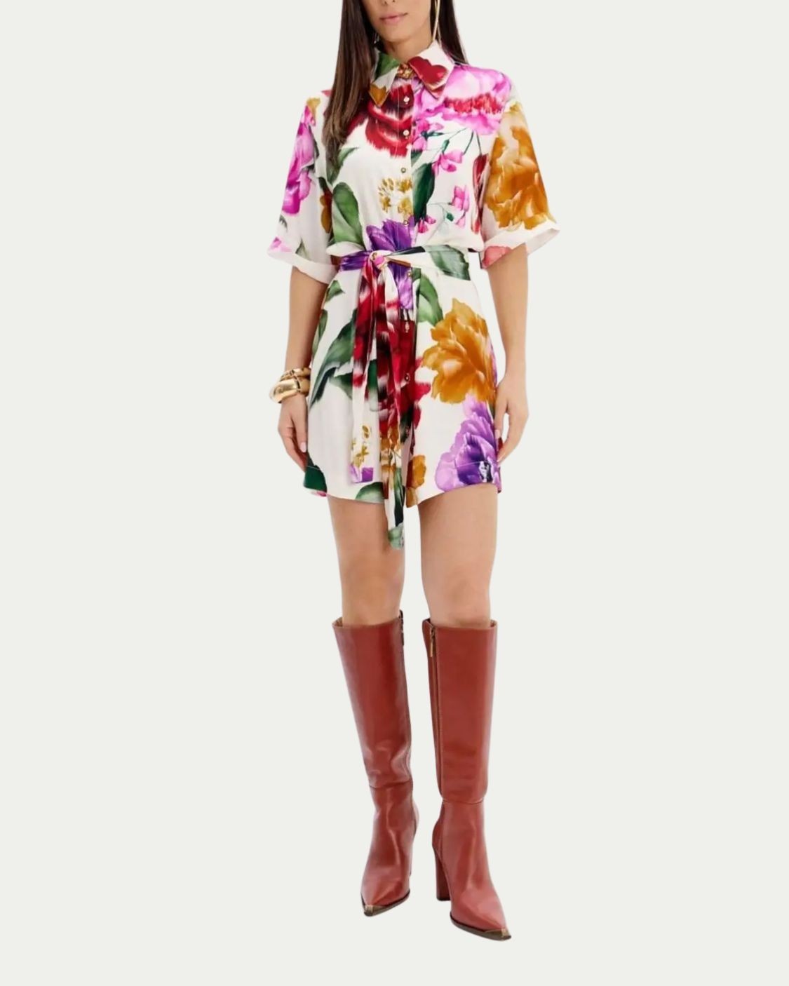 Aproveite Vestido Chemise Manga Curta Estampado Lança Perfume na Wania Maia