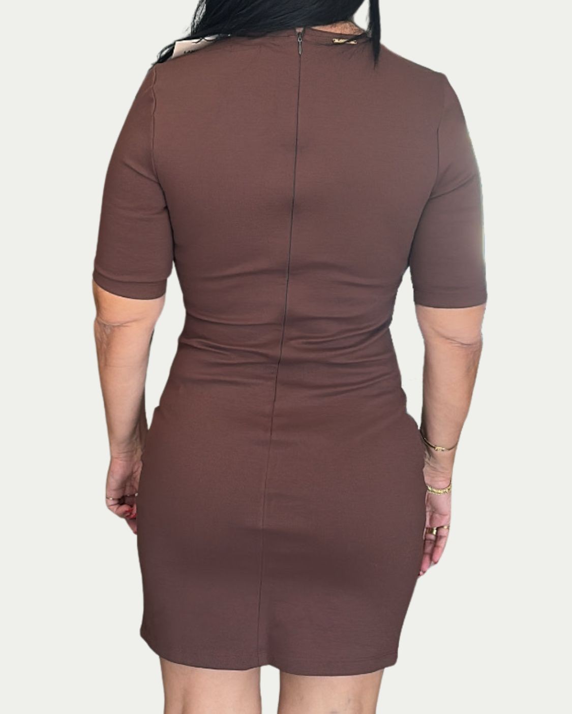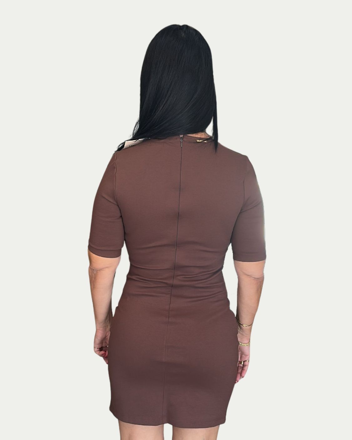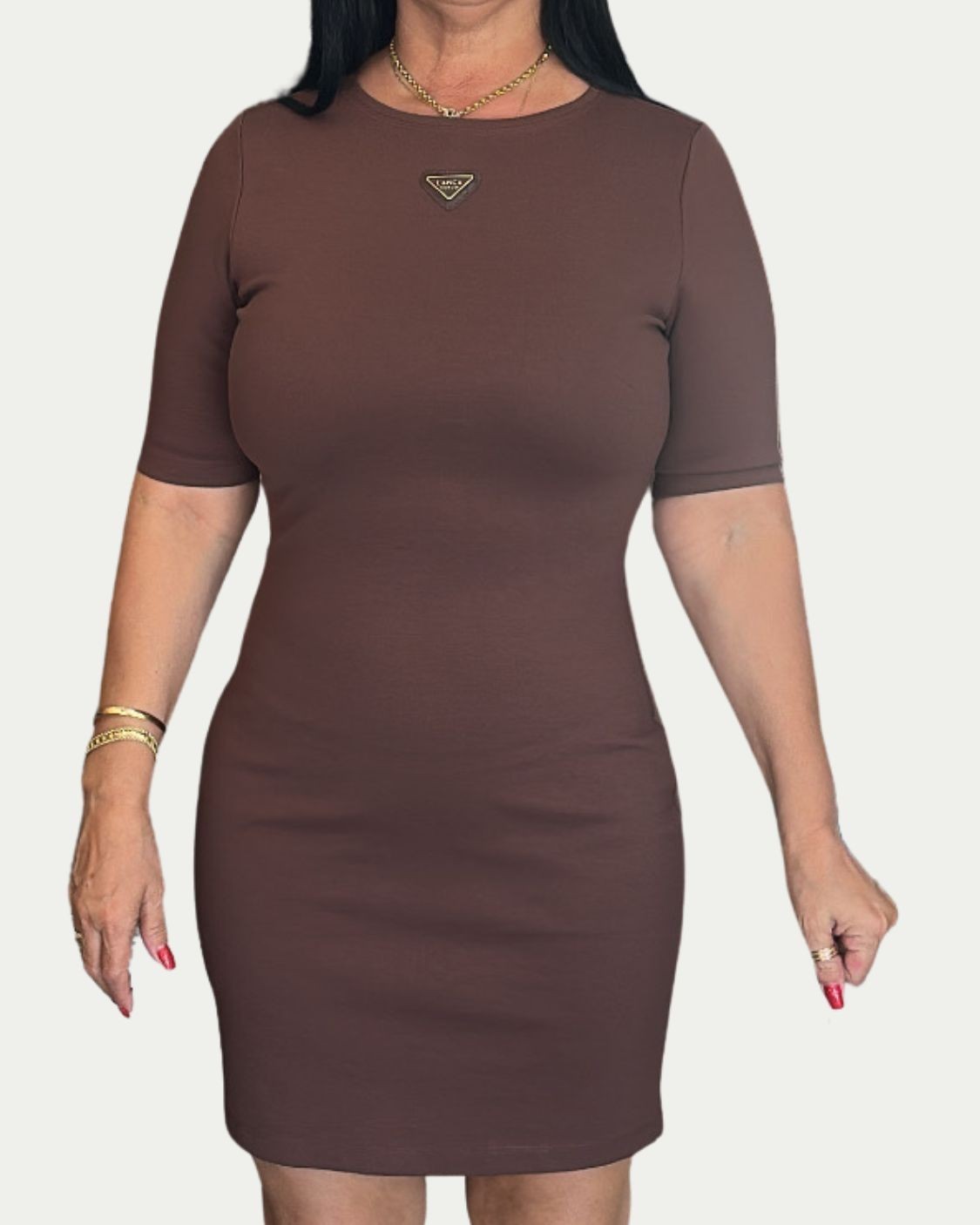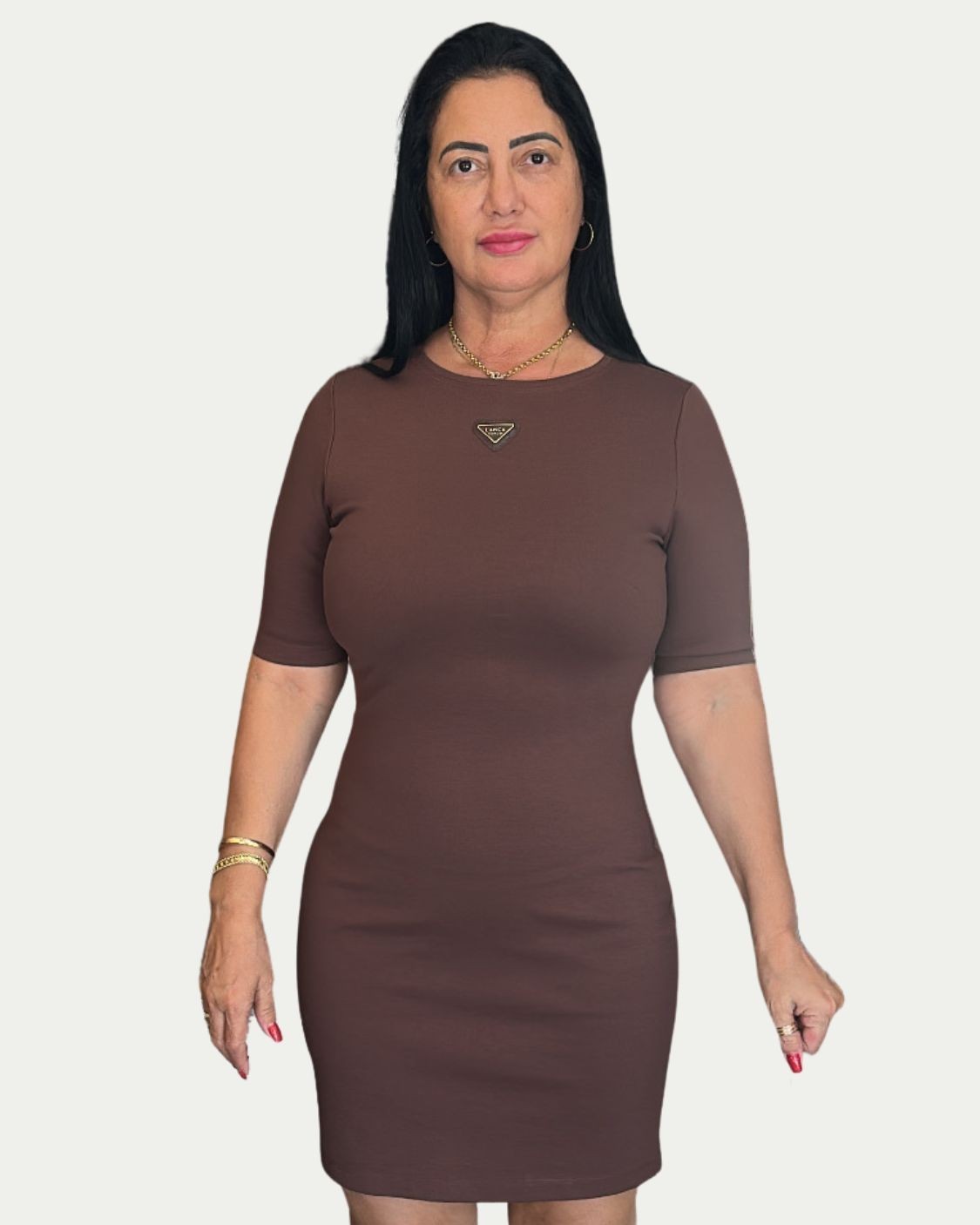 Vestido Curto Manga Curta Marrom Lança Perfume|