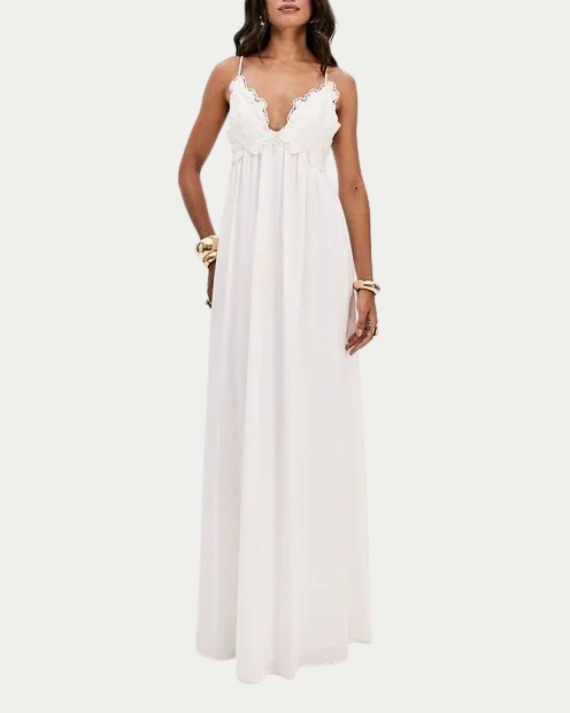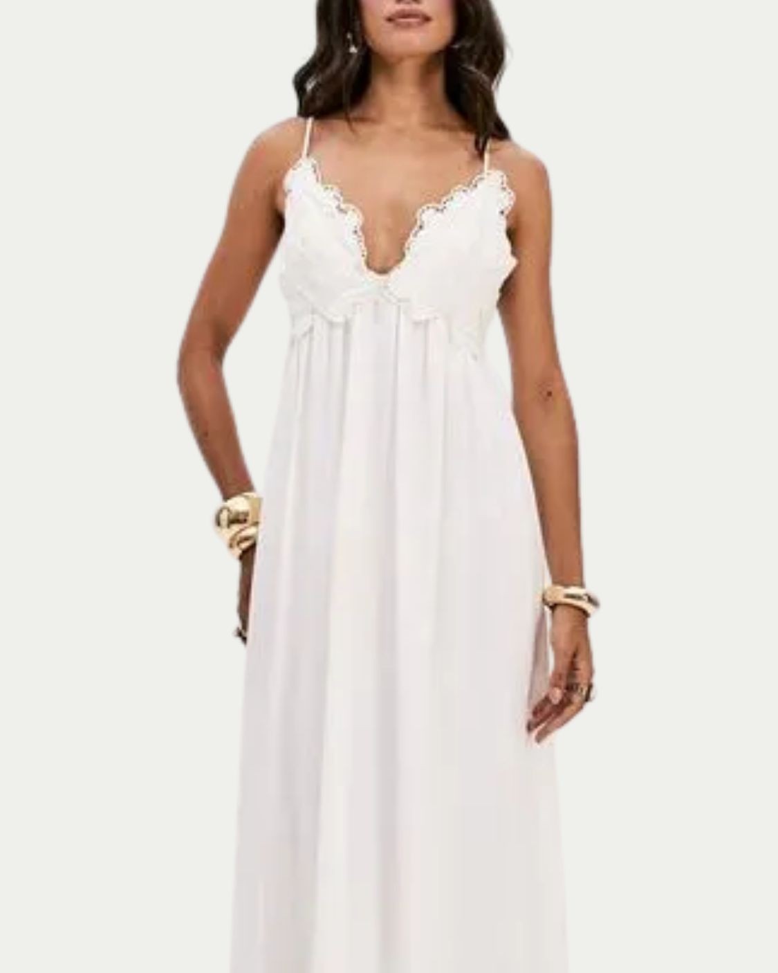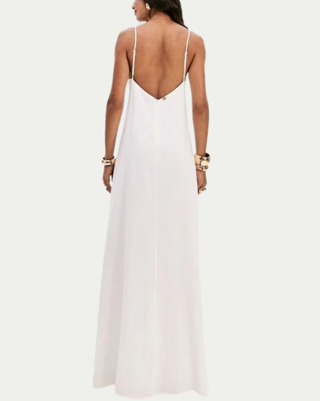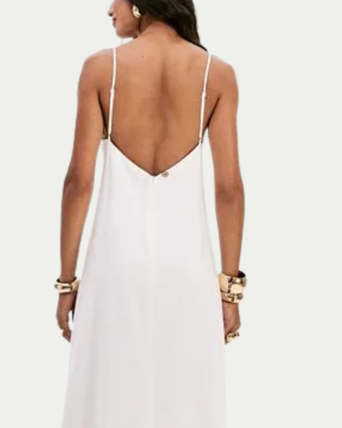 Vestido Super Midi de Alça Com LInho Branco Lança Perfume