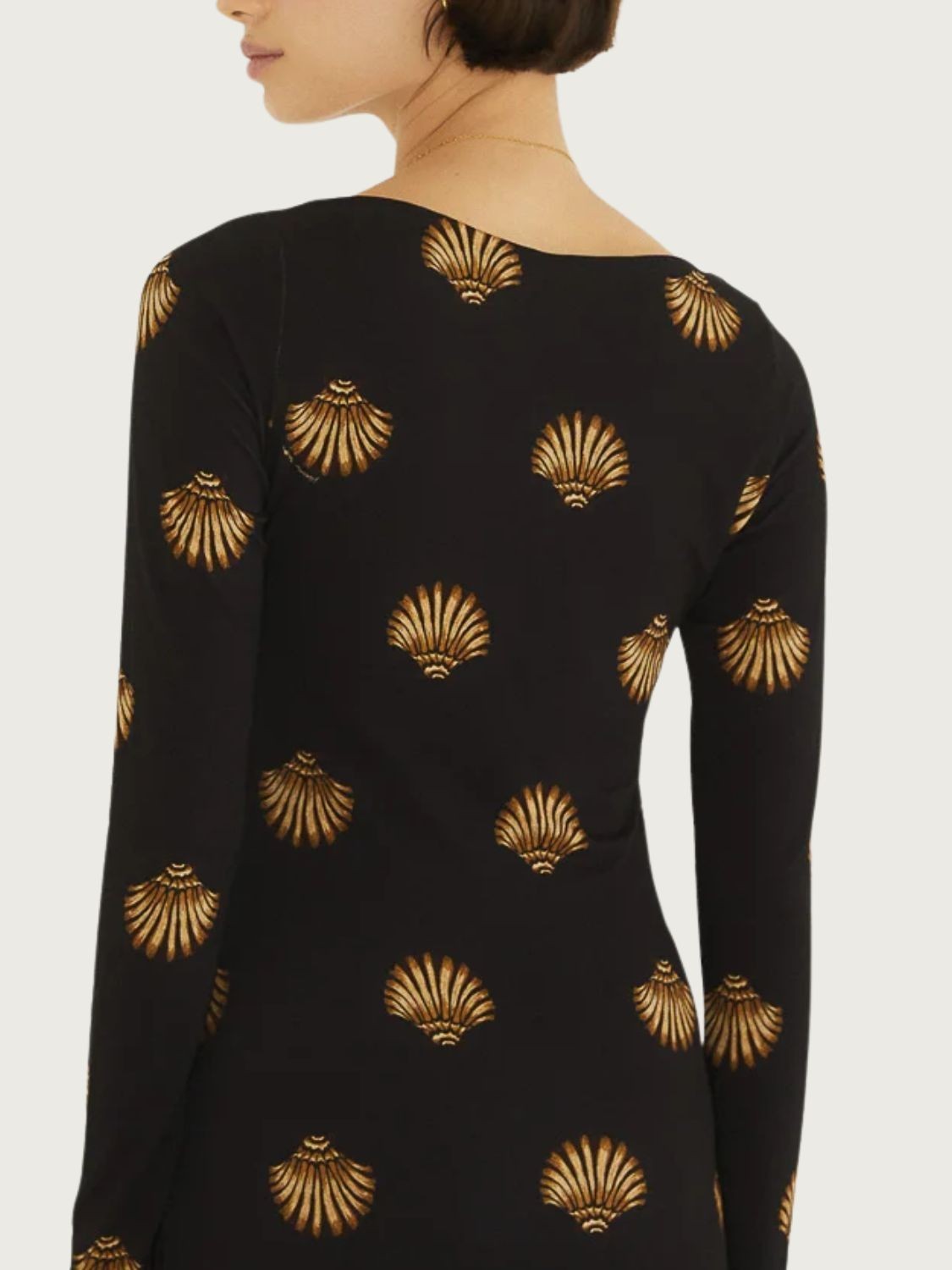 Vestido curto Farm Concha em algodão preto, leve e respirável, ideal para enfrentar diferentes climas com estilo. Manga longa com punhos bem definidos que oferecem cobertura elegante aos braços. O decote quadrado proporciona um visual clássico e moderno ao mesmo tempo. Corte reto que estruturiza o corpo sem apertar, garantindo liberdade total de movimento.
